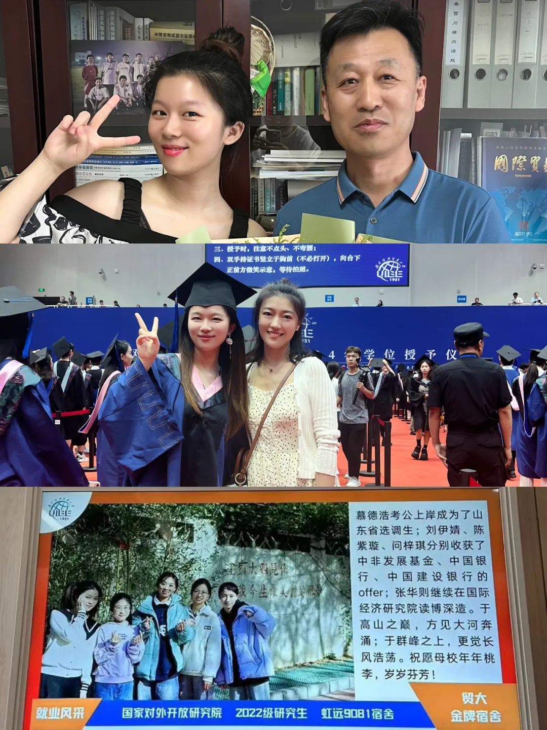 心存希冀,追光而遇;目有繁星,沐光而行。在贸大追梦的时光中,桑百川老师在学术和人生哲理上的谆谆教诲、其他师长们的指导引领、辅导员董俊缨老师在生活就业上的细致关怀、神仙舍友们在学业和求职路上的并肩作战、所有国经院同学们的互帮互助都将永远镌刻在刘伊婧心中,让其始终有前程可奔赴,亦有惠园可回首。