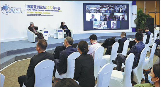 Guest speakers and an audience attend an online and offline sideline event at the Boao Forum for Asia Annual Conference 2022 in Boao, Qionghai, Hainan province, on Wednesday. Feng Yongbin / China Daily