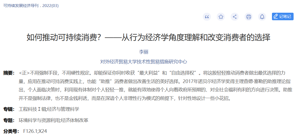 我院李丽老师的论文《如何推动可持续消费?——从行为经济学角度理解和改变消费者的选择》在《可持续发展经济导刊》2022年第3期发表。