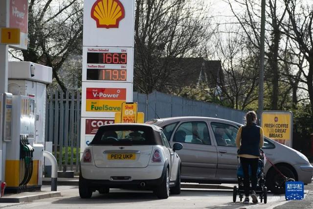 3月17日,车辆停在英国切希尔的一处加油站前。