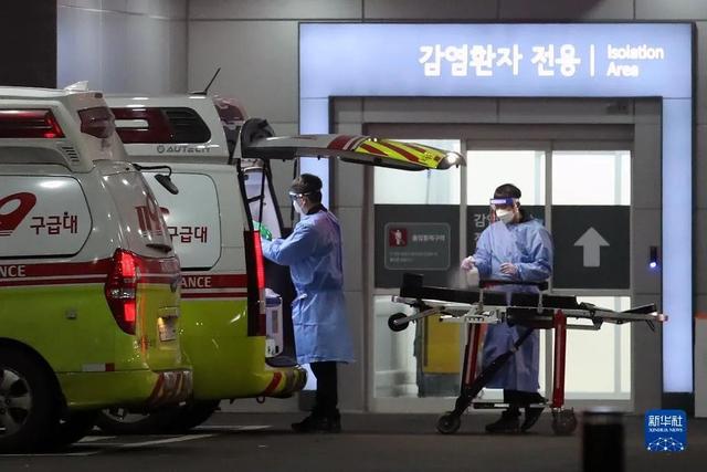 3月22日,在韩国首尔,急救医疗中心医务人员对救护车和担架进行消毒。截至23日零时,韩国单日新增新冠确诊病例超过49万例,累计确诊病例超过1000万例。
